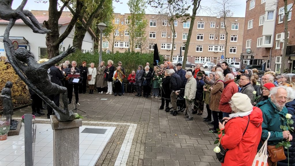 Dit jaar spraken Ronald Leopold, directeur van de Anne Frank Stichting en zelf woonachtig in de Rivierenbuurt en stadsdeelbestuurder Flora Breemer van stadsdeel Zuid. Zij werden welkom geheten door Duco Adema, voorzitter van het bestuur van stichting Kindermonument / ‘Markt voor Joden’.